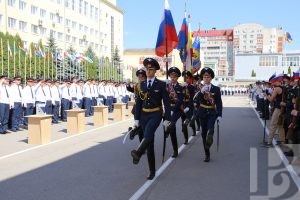 Для них этот день особенный. Молодые лейтенанты в последний раз прошагали строем по плацу, встретили и обняли родных, на счастье запустили в небо голубей и станцевали офицерский вальс. Почетное право поднять Государственный флаг Российской Федерации было предоставлено отличнику учебы, курсанту юридического факультета Никите Артамонову.