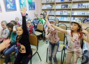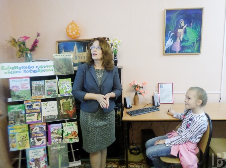 Мальчики и девочки оживленно отвечали на вопросы викторины «Экологический эрудит», знакомились с книжной выставкой «Берендеево царство, лесное государство». В завершении занятия дети с удовольствием приняли участие в игре «Угадай, кто?», где одни участники изображали представителей животного и растительного мира, а другие отгадывали их названия.