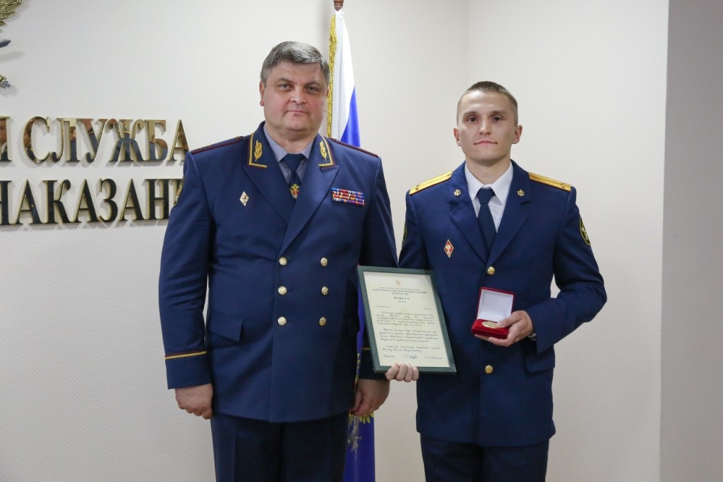В Федеральной службе исполнения наказаний чествовали выпускников образовательных организаций высшего образования ФСИН России, которые окончили учебу с золотыми медалями. В этом году на торжественное мероприятие были приглашены 17 курсантов-отличников из Академии ФСИН России (курсант юридического факультета Николай Жезлов), ВИПЭ ФСИН России, Воронежского, Кузбасского, Пермского институтов ФСИН России, Владимирского и Самарского юридических институтов ФСИН России. Вручал золотые медали выпускникам первый заместитель директора ФСИН России Анатолий Рудый, который поздравил их с успешным окончанием учебы и началом трудового пути.