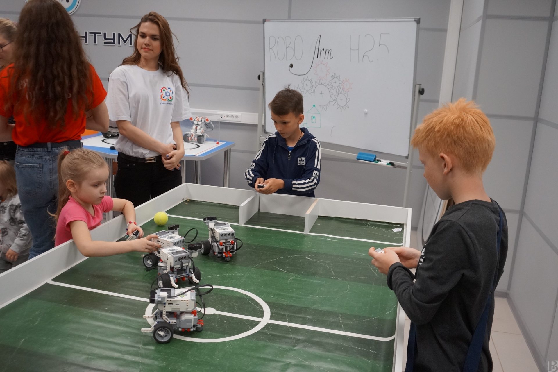 Дети с удовольствием играли в футбол на управляемых роботах, собранных из LEGO. Надев специальные очки, все желающие могли прикоснуться к виртуальной реальности и встретиться с динозаврами и инопланетянами. Организаторы позаботились и о любителях химии – в одном из квантумов можно было увидеть результат смешивания дихромата аммония и марганцовки.