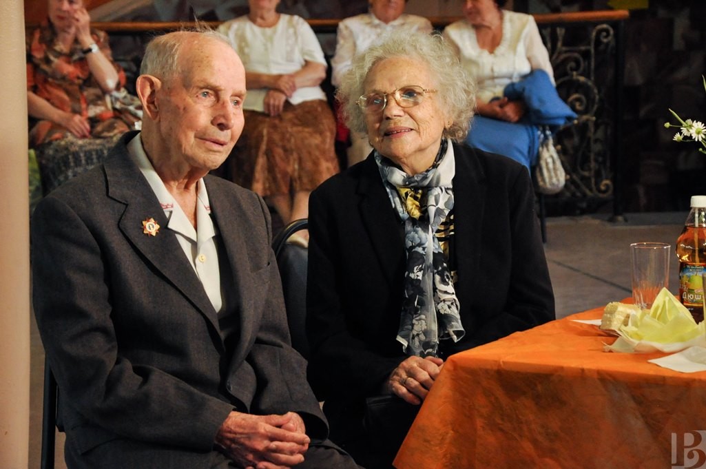 В завершение вечера организаторы подарили парам букеты цветов и конфеты, а хор ветеранов исполнил для супругов песню «Мы желаем счастья вам».