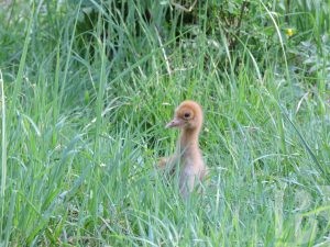 В питомнике с родителями живут два стершонка и серый журавленок. Еще один птенец серого журавля находится под опекой сотрудников заповедника.