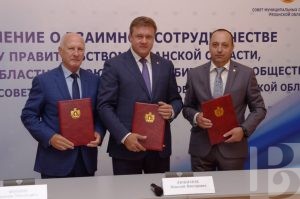 На церемонии состоялось подписание соглашения о взаимном сотрудничестве между правительством области, Рязанским областным союзом потребительских обществ и ассоциацией «Совет муниципальных образований Рязанской области». Свои подписи под документом поставили Николай Любимов, руководитель облпотребсоюза Евгений Ланцов и председатель Совета муниципальных образований Василий Фомин.