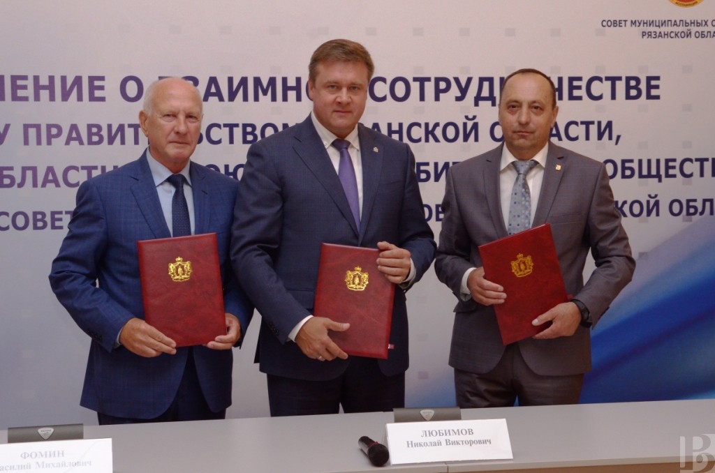 На церемонии состоялось подписание соглашения о взаимном сотрудничестве между правительством области, Рязанским областным союзом потребительских обществ и ассоциацией «Совет муниципальных образований Рязанской области». Свои подписи под документом поставили Николай Любимов, руководитель облпотребсоюза Евгений Ланцов и председатель Совета муниципальных образований Василий Фомин.