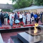 Участники митинга возложили к Вечному огню алые гвоздики и выложили на гранитном постаменте у Вечного огня из сотен свечей слова «Я помню».