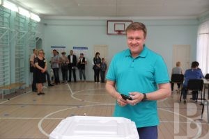 Николай Любимов проголосовал на избирательном участке, расположенном в школе № 6 г. Рязани.