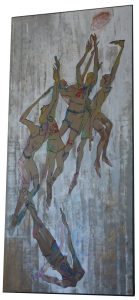 Абстрактное решение позволило дипломницам Галины Шуваевой и Василия Колдина отразить свое понимание философских тем, впечатления от поездок, внутренний мир. Среди названий – «Искупление», «За гранью», «Стихия», «Космос», «Единство и борьба противоположностей»… Но к абстракции, конечно, никто не принуждал. В той же группе одна девушка создала эскиз многофигурной реалистической картины «Симфония». Ее героями стали маэстро Сергей Оселков и Рязанский губернаторский симфонический оркестр. Две выпускницы подняли спортивную и этническую темы на более высокий, можно сказать, философский уровень, найдя меру условности в изображении людей (силуэтов)…