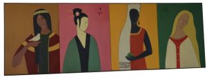 Девушки, которым нет и двадцати лет – сейчас в училище учатся 4 года – без страха берутся за холсты большого размера (пусть и не всегда справляются с ними). Что радует – многие умеют дерзать, оригинально мыслить. Это видно и по дипломам, и по работам, которые они выставляли рядом.