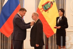 В областном правительстве состоялась торжественная церемония награждения. Государственные и региональные награды 27-и рязанцам вручил губернатор Николай Любимов. Десять человек были отмечены почетными званиями в своих отраслях, что является абсолютным признанием их профессионализма. Так, почетное звание «Заслуженный учитель РФ» присвоено педагогу рязанского лицея № 4 Елене Орловой, почетное звание «Заслуженный работник транспорта РФ» – водителю автобуса рязанской автоколонны №1310 Владимиру Цепляеву, почетное звание «Заслуженный металлург РФ» – директору по производству Приокского завода цветных металлов Адилю Муралееву.