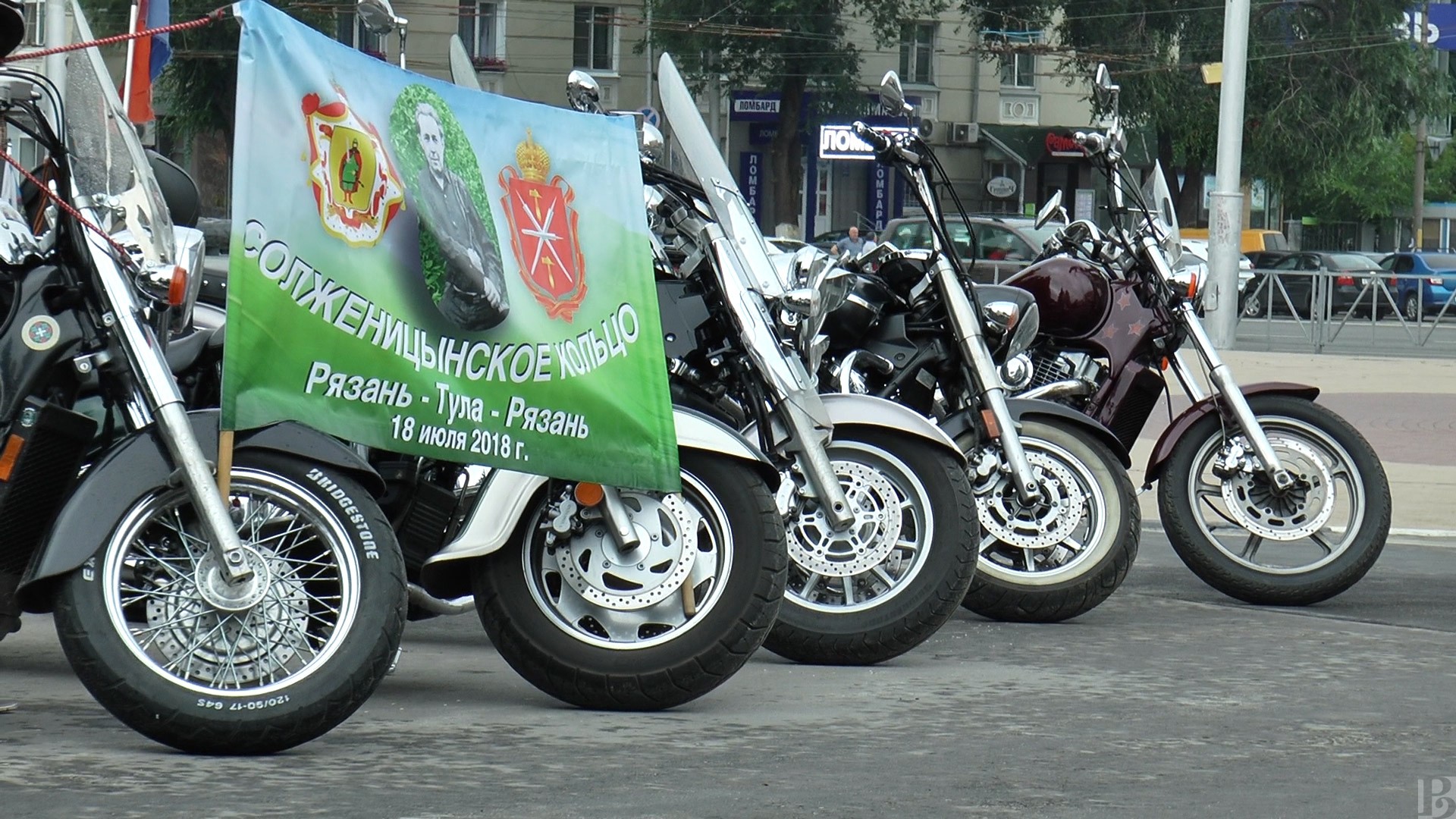Старт был дан на площади Победы. Члены мотоклуба «35 миль» с радостью подхватили идею рязанского Солженицынского общества отметить 100-летие писателя, тесно связанного с рязанским краем, пробегом Рязань – Тула – Рязань.