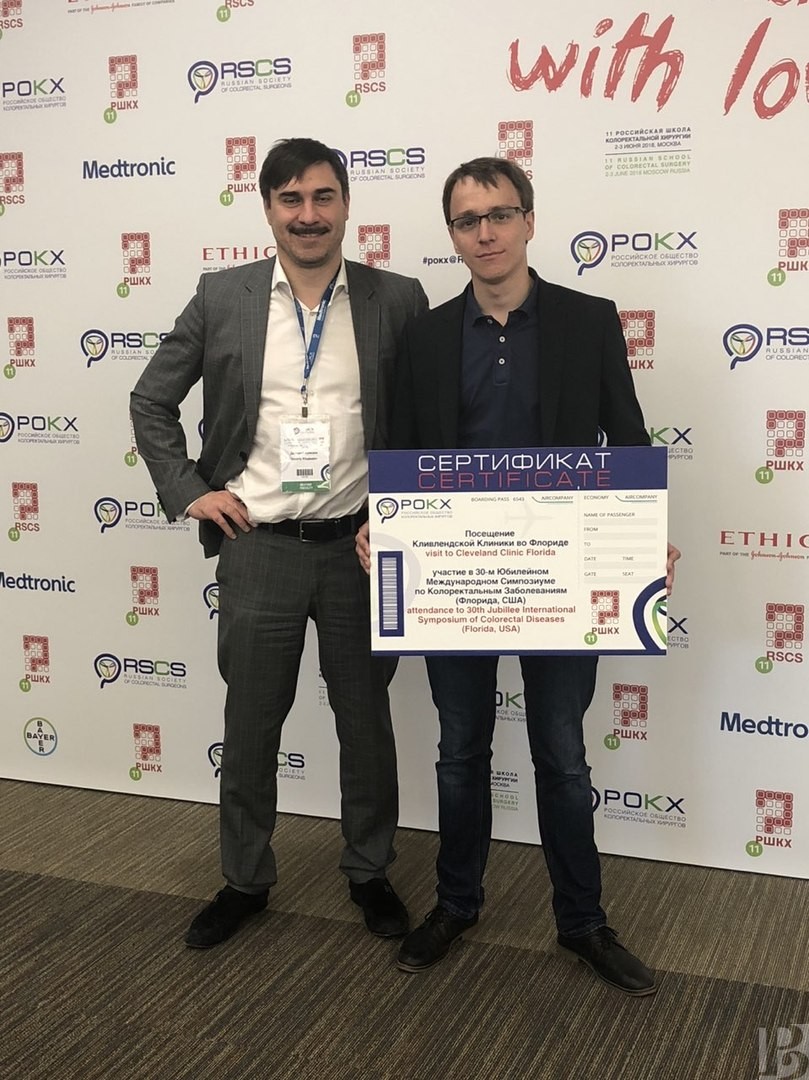 Научную новизну, объем исследования, выводы и рекомендации эксперты международного жюри оценили и признали доклад Ивана Игнатова лучшим среди работ молодых ученых. В качестве призов за исследование хирург получил возможность пройти стажировку в Кливлендской клинике во Флориде, участие в 30-м Юбилейном Международном симпозиуме по колоректальным заболеваниям (США) и курс английского языка в школе СкайИнг.