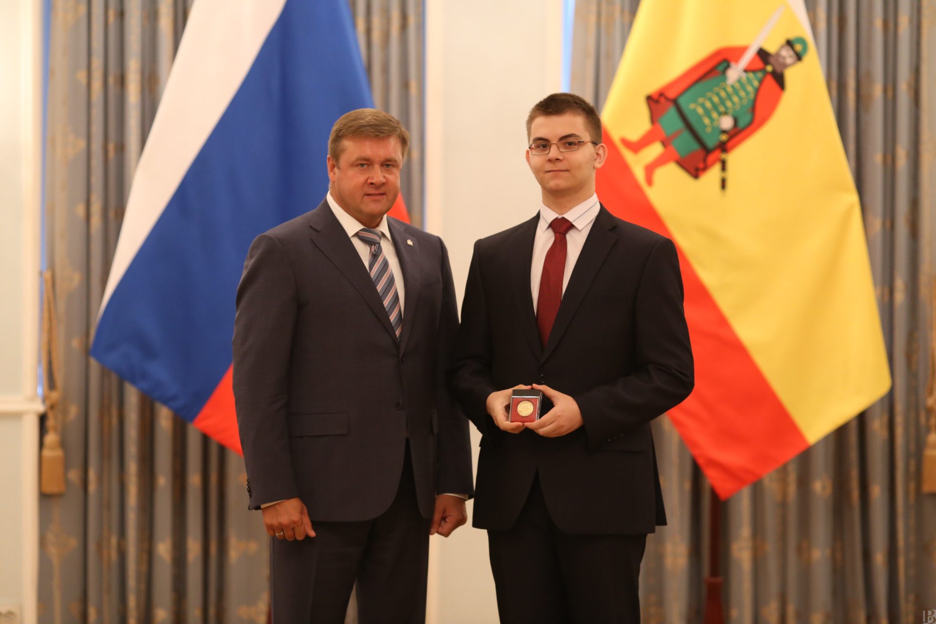 Знак губернатора «Медаль «За особые успехи в учении» вручил одиннадцатиклассникам глава региона Николай Любимов.