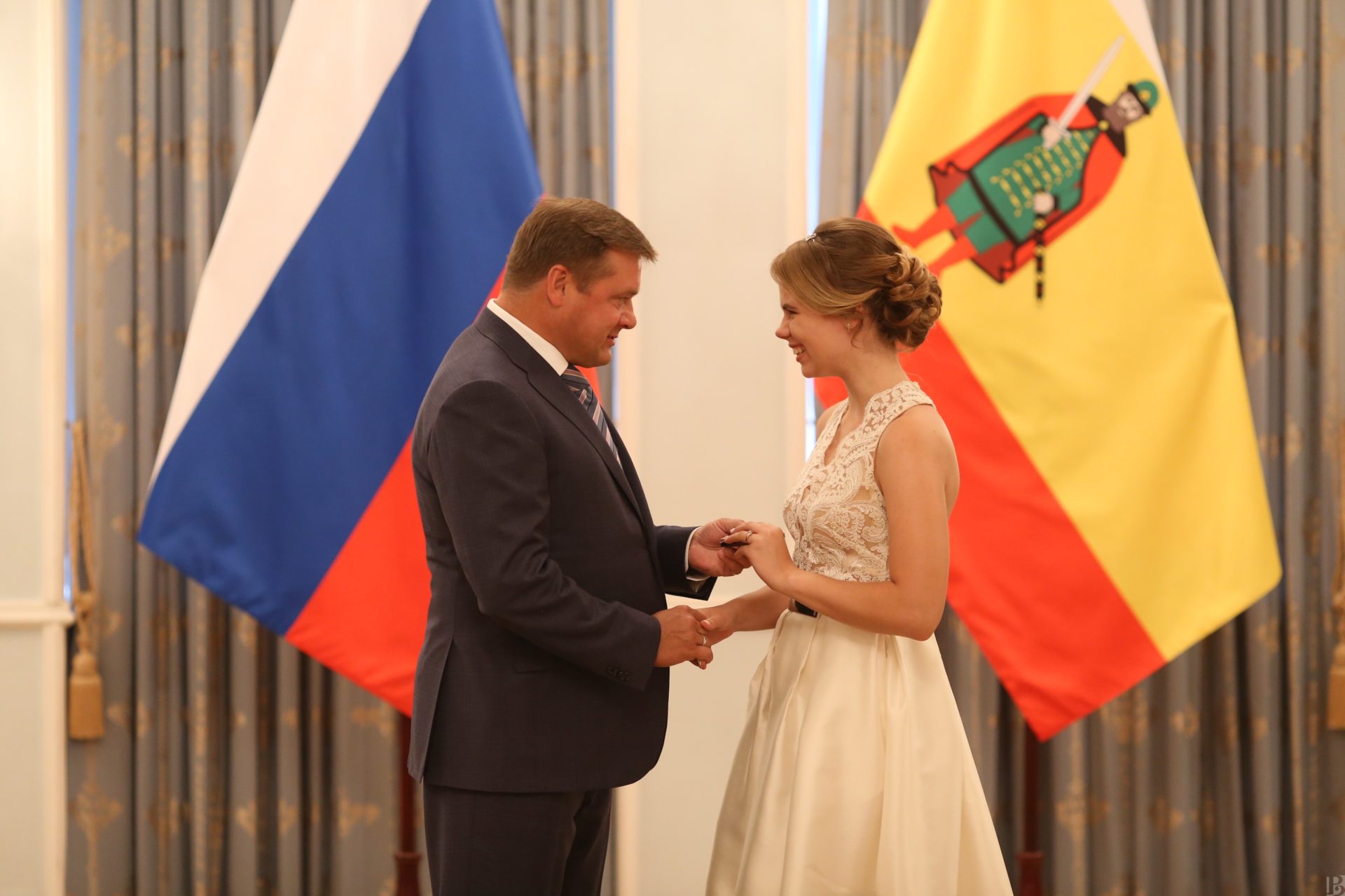 В этом году в Рязанской области со школой попрощались почти 4400 человек. 551 вчерашний школьник получил аттестаты с отличием, из них 258 по итогам государственной итоговой аттестации награждаются медалью «За особые успехи в учении». Сегодня губернатор вручил награду 40 юношам и девушкам из Рязани и области. Все они добились высоких результатов во всероссийской олимпиаде школьников, на фестивалях, смотрах, конкурсах, активно участвовали в работе общественных организаций, органов ученического самоуправления.
