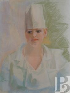 В одном из интервью Владимир Александрович говорил: «Вообще, если пишу портреты, то только тех, кто мне симпатичен – это и друзья, и солдаты Великой Отечественной войны, и простые труженики». В экспозиции можно увидеть и портрет его дочери – голубоглазой, рыжеволосой девушки. На одной из работ изображена непосредственная, лирическая медсестра.