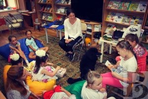 В областной детской библиотеке продолжаются занятия с канистерапевтом Натальей Дымич в проекте «Сказки для хаски». В распоряжении Натальи – собаки разных пород, потому в этот раз в гости к ребятам пришла Юми – десятимесячный щенок породы королевский пудель. Вместе с ней дети прочитали «вредные советы» Григория Остера и попытались придумать заглавия к этим необычным стихам.