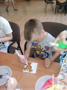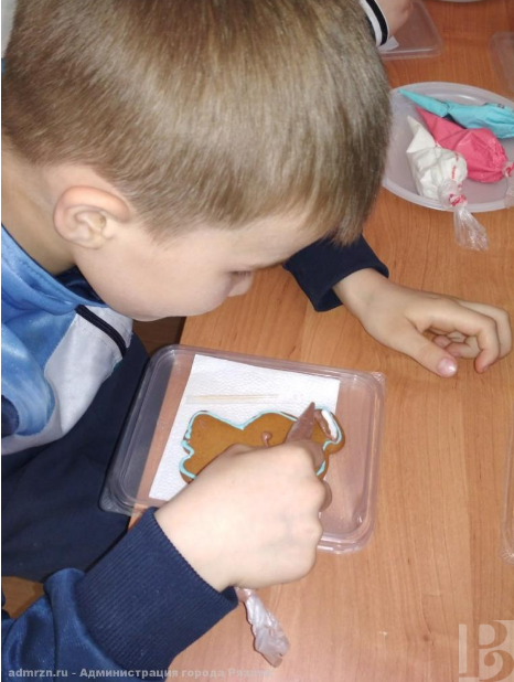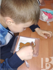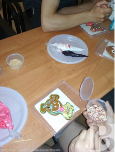 Ребята познакомились с новыми профессиями и смогли после небольшого инструктажа попробовать себя в новых ролях. 30 воспитанников школы-интерната вырезали из теста фигурки, а затем украшали их, используя глазурью. Ребята творчески оформили свои пряники, придумывая свой собственный рисунок.