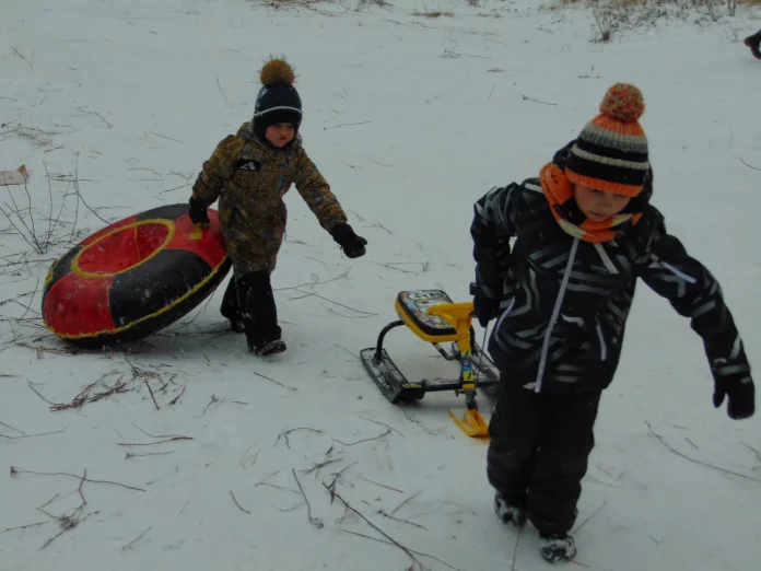 Первый день календарной зимы. Начался отсчет до праздника Нового года и школьных каникул. А дети уже окунулись с головой в зимние забавы. Фото Владимира Проказникова