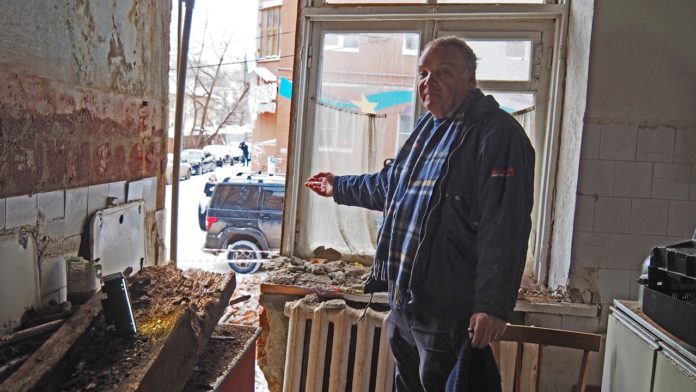 Житель дома 16 Б на проезде Грибоедова Виктор Николаевич вчера вечером пришел в свою квартиру и застал полную разруху. Такой вид открывается с кухни. К счастью, жертв и пострадавших нет. Оставшиеся в доме жильцы сегодня переезжают в маневренный фонд. Возле дома круглосуточно дежурит бригада МЧС. Фото Димитрия Соколова