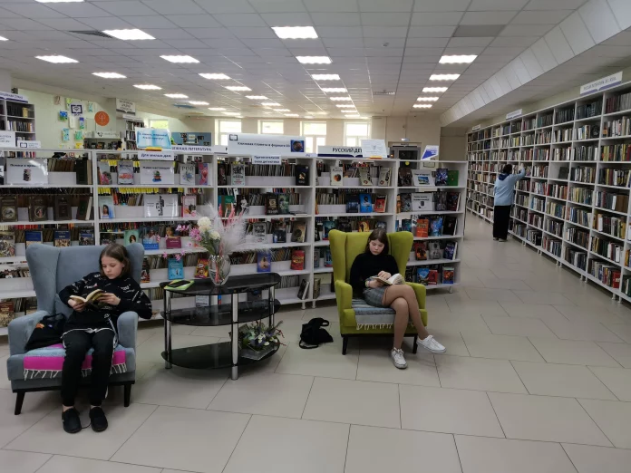 Международный день книгодарения. Целую библиотеку приключенческой литературы преподнесла в дар есенинской библиотеке глава муниципального образования г.Рязань Татьяна Панфилова. Школьников не оторвать от чтения в уютном зале есенинки. Фото Димитрия Соколова