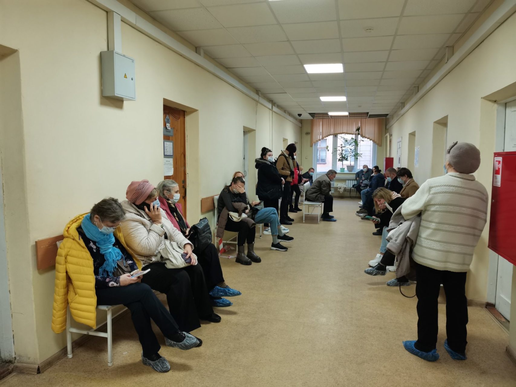 В ожидании приема. Городские поликлиники переполнены пациентами. Количество заболевших коронавирусной инфекцией растет. По данным оперативного штаба 14 октября в регионе зарегистрировано 44275 случаев заболевания COVID-19. Фото Димитрия Соколова