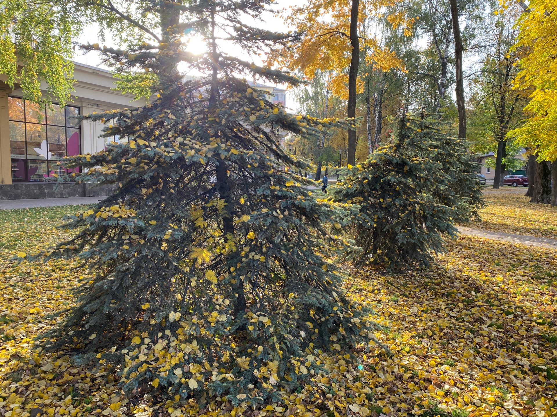 Православные христиане отмечают Покров Пресвятой Богородицы. Белые хлопья где-то в пути, но желтый наряд елкам тоже к лицу. Фото Димитрия Соколова