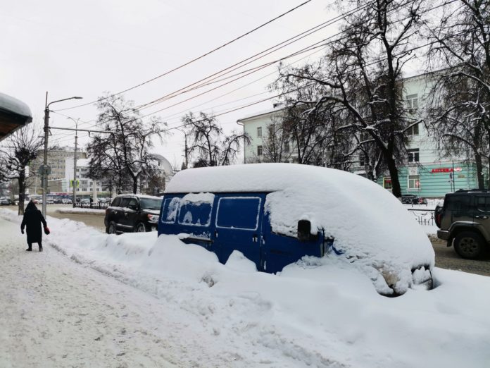 Вспоминается колыбельная из кинофильма «Цирк»: «Спят медведи и слоны, // Дяди спят и тёти. //Все вокруг спать должны, //Но не на работе.» Иногда засыпают владельцы брошенных на проезжей части автомобилей. Машины простаивают целыми сутками на дорогах, затрудняя работу спецтехники по уборке города. Такая же ситуация нередко складывается во дворах. Фото Димитрия Соколова