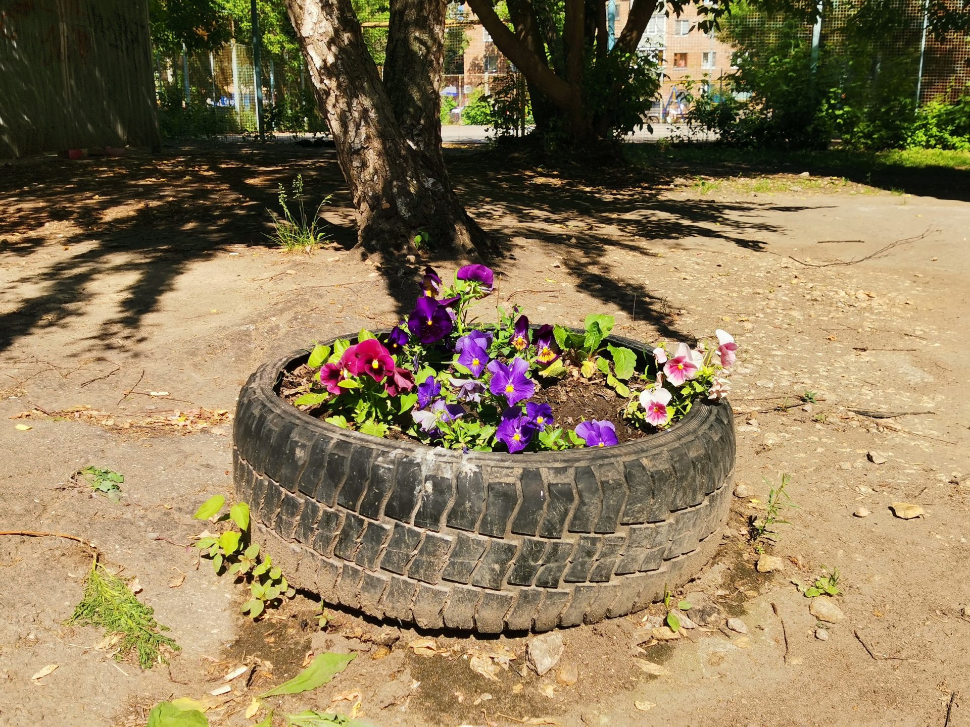 Рязанцы пытаются своими силами создавать в городе красоту. Конечно, автопокрышки – не лучший материал для устройства клумб. Они запрещены для использования в подобных целях. А вот энтузиазм горожан достоин восхищения. Фото Димитрия Соколова