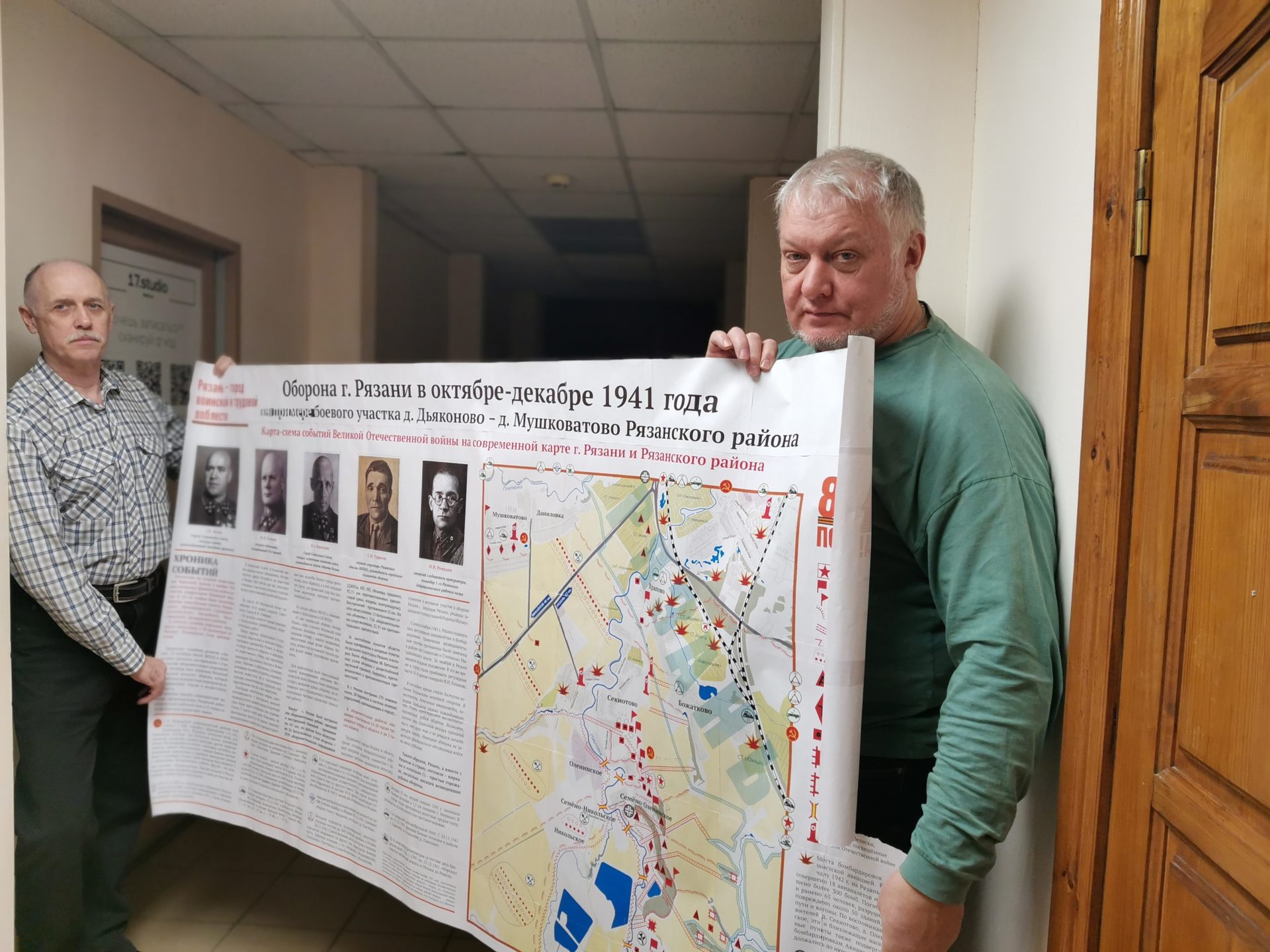 Сегодня в Доме общественных организаций презентуют карту «Оборона Рязани в октябре-декабре 1941 года». В дни героической обороны Москвы Рязань защищала столицу с южного направления. На снимке: среди составителей карты – члены Рязанской городской топонимической комиссии Арсен Бабурин и Дмитрий Володин. Фото Димитрия Соколова