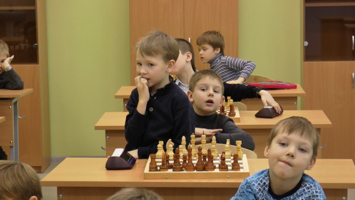 Международный день шахмат. В рязанской школе №75 шахматы входят в учебную программу факультативно. А на переменах ученики могут разыгрывать партии в коридоре ростовыми фигурами. Фото Димитрия Соколова