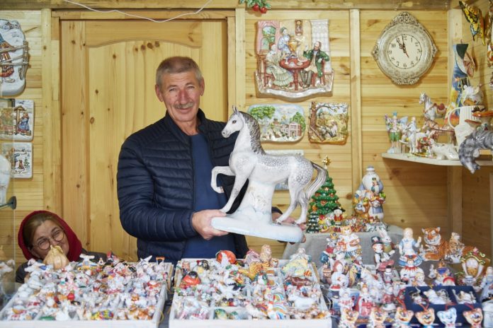 Ярмарка изделий мастеров из разных городов России развернулась на Лыбедском бульваре возле Цирка. Здесь и фарфоровые статуэтки, и вязаные изделия, и куклы в народных костюмах, и всевозможные обереги из дерева. Глаза разбегаются, а душа радуется. Ярмарка проходит в рамках IV Форума древних городов. Фото Дмитрия Осинина
