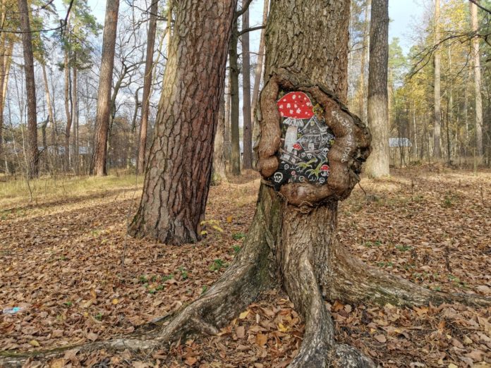 Есть искусство стрит-арт, а есть лес-арт, или дерево-арт. Вот такую роспись обыкновенного дупла 80-летней сосны можно встретить на Тропе Паустовского в Солотче. Художник пожелал остаться неизвестным. Фото Димитрия Соколова
