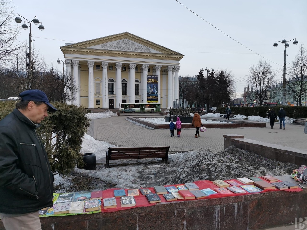 Литературная, она же Театральная… Была на этой площади когда-то ярмарка продовольственная, а теперь проходит книжная, импровизированная. Ждешь на перекрестке «зеленого», просматриваешь обложки книг, погружаешься в метафизику городских пространств.