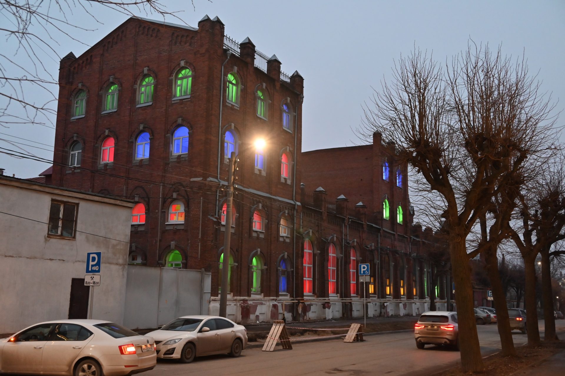 Знакомых окон негасимый свет. У этого здания большая биография: первая рязанская электростанция, хлебозавод, теперь – Дом молодежи. Вечером окна здания озаряются разноцветными огнями. Фото Димитрия Соколова