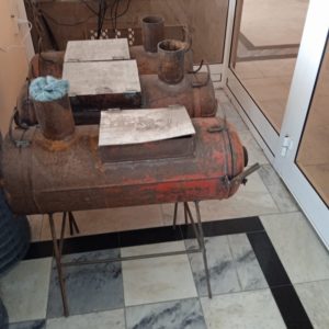 Кузнец Вадим Дыкин из Рязани предлагает печку для блиндажей и окопов из использованных газовых баллонов.