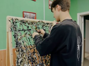 Старожиловцы, дети и взрослые, вяжут маскировочные сети, материал для которых закупили в Касимове.
