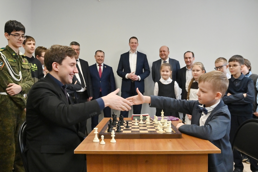 Многократный чемпион мира, а ныне сенатор Сергей Карякин и губернатор Павел Малков посетили шахматный клуб СШОР «ЦСК»