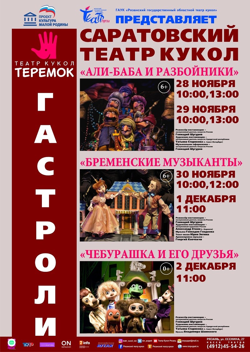 Программа гастролей Саратовского театра кукол «Теремок»: