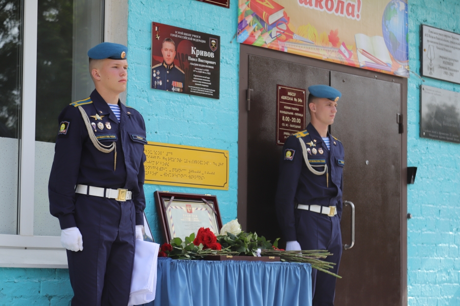 Павел Викторович Кривов в 1999 году поступил в Рязанское высшее воздушно-десантное командное училище имени генерала армии В.Ф. Маргелова. После окончания училища в 2004 году служил на командных должностях в 137-м парашютно-десантном полку. Участник боевых действий в Сирии. В 2020 году назначен командиром разведывательной роты своего полка. С 24 февраля 2022 года участвовал в специальной военной операции, воевал на Изюмском направлении, был дважды ранен. Погиб в бою. 18 сентября был похоронен в Рязани. И теперь память о Герое увековечена в его родной школе.