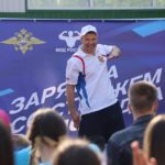 Зарядку провел многократный чемпион и призер международных турниров капитан полиции в отставке Дмитрий Небольсин.
