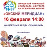 16 февраля в Рязани состоится традиционный некоммерческий городской открытый фестиваль искусств национальных культур «Окский меридиан». Мероприятие пройдёт во Дворце культуры «Приокский» (вход свободный).