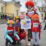 Забег хоть и веселый, но вовсе не шуточный – юные участники в возрасте от 6 лет боролись изо всех сил за победу на дистанциях 150, 300 и 450 метров. Забавные костюмы поднимали настроение.