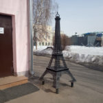 Всех пришедших на входе встречает макет Эйфелевой башни