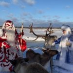 По пути в Рязань Дед Мороз и Снегурочка заглянули к северным оленям в Агро-Пустынь. «Это мои друзья», - сказал нам зимний старец. Фото Димитрия Соколова