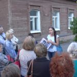 Всемирный день экскурсовода. На снимке: автор проекта "Я вам покажу" Ксения Паначева рассказывает экскурсантам о доме, где бывали К.Паустовский, А.Гайдар и Р.Фраерман. Фото Димитрия...