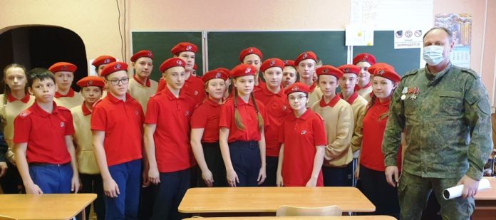 На встрече со школьниками Александр Жорин вспомнил о своем однокласснике Денисе Афонине. Жили в одном дворе в Приокском, а после школы жизнь их развела. Позже Александр узнал, что в 1994 году Дениса призвали в армию, а через год в составе разведгруппы направили в Чечню, где он неоднократно участвовал в боевых действиях. В январе 1996 года в окрестностях села Старые Атаги группа на протяжении четырех часов вела ожесточенный бой. Семеро человек погибли, а Денис получил тяжелое ранение, но продолжал сражаться. 9 января он погиб. За смелость и отвагу награжден орденом Мужества. Мемориальную доску в память о герое ребята видят каждый день на фасаде школы. А вот орден Мужества юнармейцы рассмотрели на камуфляже у Александра Жорина. Рядом с ним – медали «За отвагу» и «За службу Отечеству».