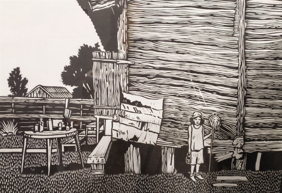 Екатерина Вячеславовна преподает графику в детс-кой художественной школе № 1 г. Рязани. Ее основные направления творчества – печатная графика, например, линогравюра и монотипия. А главные сюжеты – детство, природа и повседневная жизнь любимого города. Персонажами картин художницы становятся дочь Маша, знакомые и друзья и даже… деревенские козы! На выставке можно увидеть в том числе этот ироничный парный портрет. А в образы старых домов и улиц Рязани можно вглядываться долго, настолько детален каждый фрагмент.