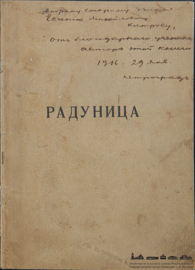 Свой столь значительный успех поэт по праву разделил с человеком, который первым отметил его творческий дар. 29 января 1916 года Есенин отослал в Спас-Клепики экземпляр «Радуницы» с дарственной надписью: «Доброму старому учителю Евгению Михайловичу Хитрову от благодарного ученика, автора этой книги».
