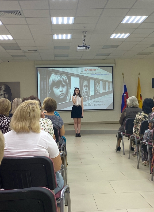 В центральной городской библиотеке имени С.А.Есенина представители общественности собрались на акцию памяти погибших детей Донбасса. Среди выступавших – те, кому не раз довелось быть в ДНР, на Аллее ангелов, встречаться с детьми, которые рано становятся взрослыми в условиях непрекращающихся обстрелов со стороны украинских неонацистов.