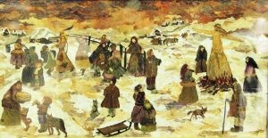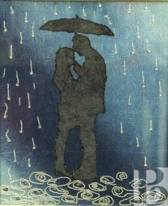 На окраине села стынет ненастный осенний вечер, укутывая дома, поля и рощи в плотные облака. Люди расходятся по домам, негромко обсуждая радости и неурядицы, как вдруг с неба раздаются голоса. Дед с бабкой приникают к плетню, внучек забирается по бревнам сарая, чтобы лучше рассмотреть удивительную картину, дворовый пес замирает на пригорке… Все глядят, кто с грустью, кто с надеждой, на журавлиный клин, улетающий за горизонт, и даже солнце чуть-чуть выглядывает из-за туч, чтобы полюбоваться птицами и осветить им путь. Панно иллюстрирует стихотворение «Отговорила роща золотая» С.А. Есенина. Примечательнее всего то, что природа не только стала образом для художницы Елены Захаркиной, но и подарила материалы. Деревья, холмы, небеса, люди – все мастерски выложено из фрагментов засушенных листьев, лепестков и трав. Так что роща, может быть, и отговорила – но теперь ее голос сохранен на картине в приятных оттенках осени.
