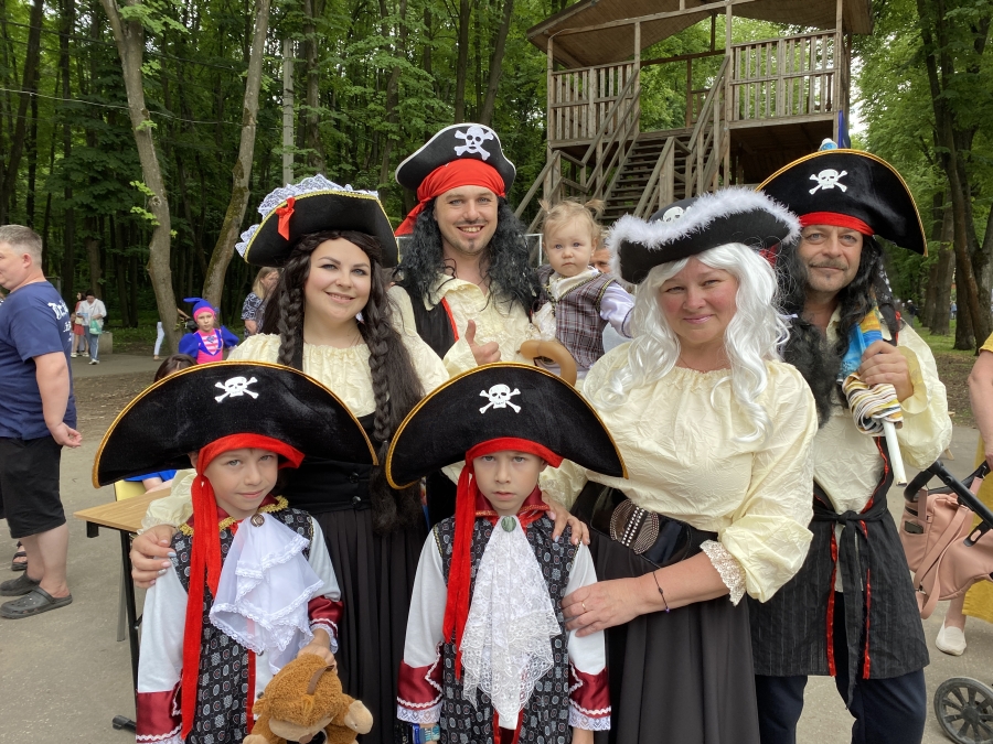 В Лесопарке 1 июня прошел костюмированный парад семей. Семья Вихровых пришла на дефиле в костюмах флибустьеров в полном составе: мама, папа, бабушка, дедушка и трое детей. «Мы – благородные пираты, – сказали они, – потому что выступаем за позитивное отношение к жизни, боремся за всё хорошее».